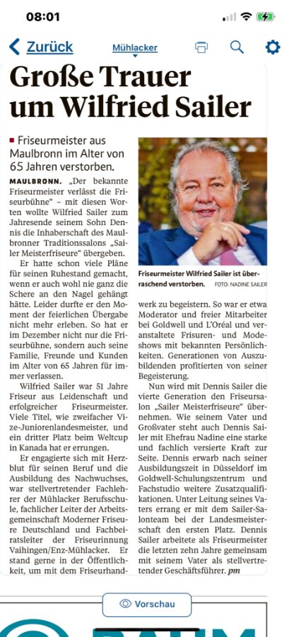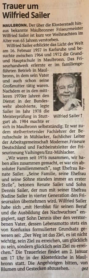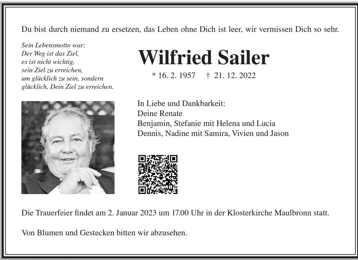 Wilfried Theodor Sailergestorben am 21. Dezember 2022
